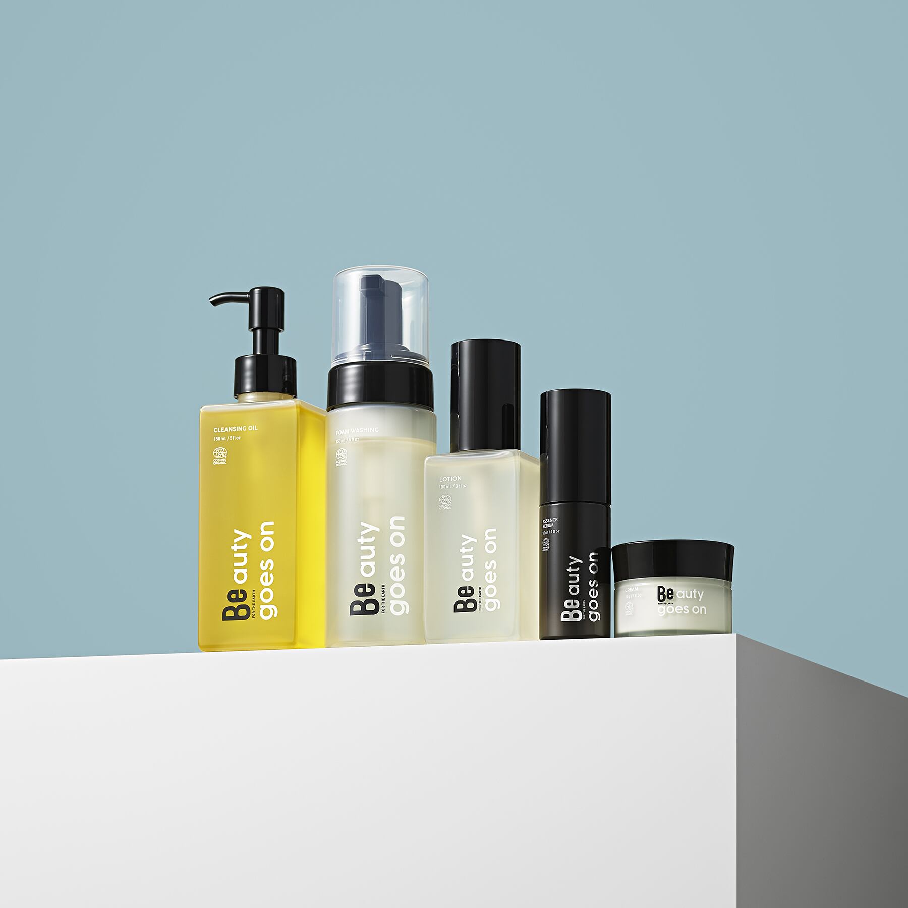 廃棄物ゼロを目指して。Beスキンケアライン5品*には、水平リサイクルが可能なPET素材を採用。スキンケア容器がまた、スキンケア容器に生まれ変わります。